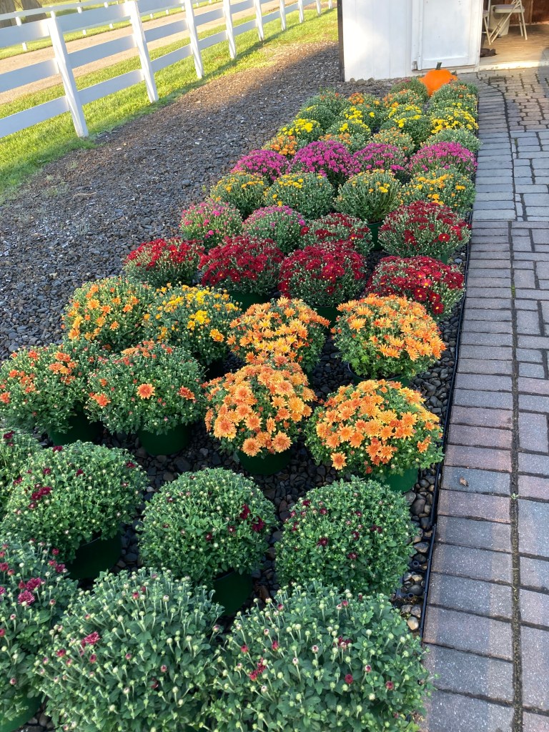 Seasonal-Mums and Pumpkins Mums – $8.99 or 3 for $24 Pumpkins- $3-$8 depending on size Share this: Share on X (Opens in new window) X Share on Facebook (Opens in new window) Facebook Like Loading...
